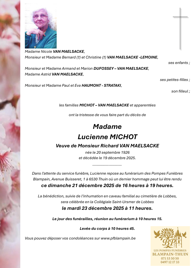Nous présentons nos très sincères condoléances à toute la famille, en espérant que celle-ci pourra trouver dans son entourage proche le soutien nécessaire pour faire face à cette épreuve.